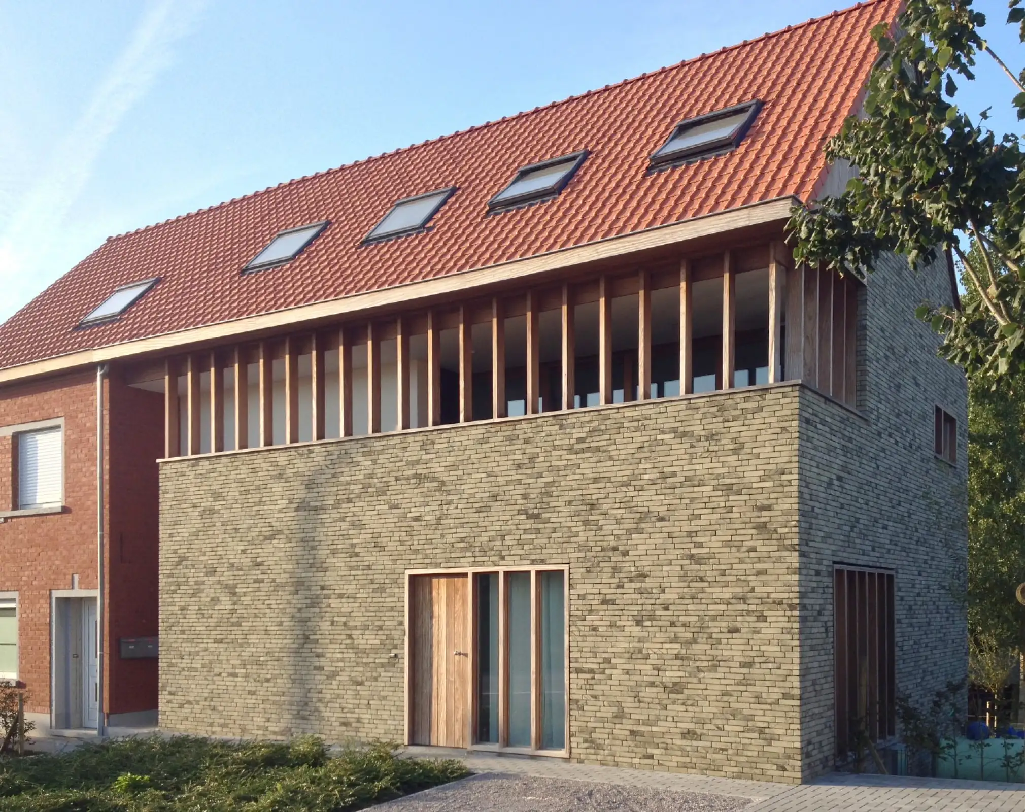 The new building contains two units, each spread over two floors. Due to the significant difference in ground level between the front and rear, four levels could be developed. A continuous roof in storm tiles creates visual unity between the existing structure and the new extension.