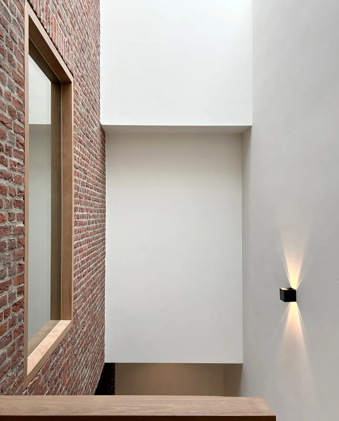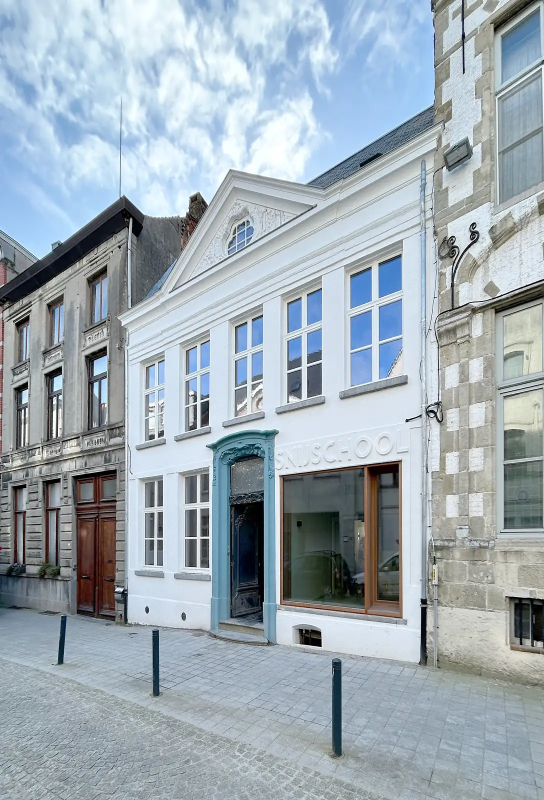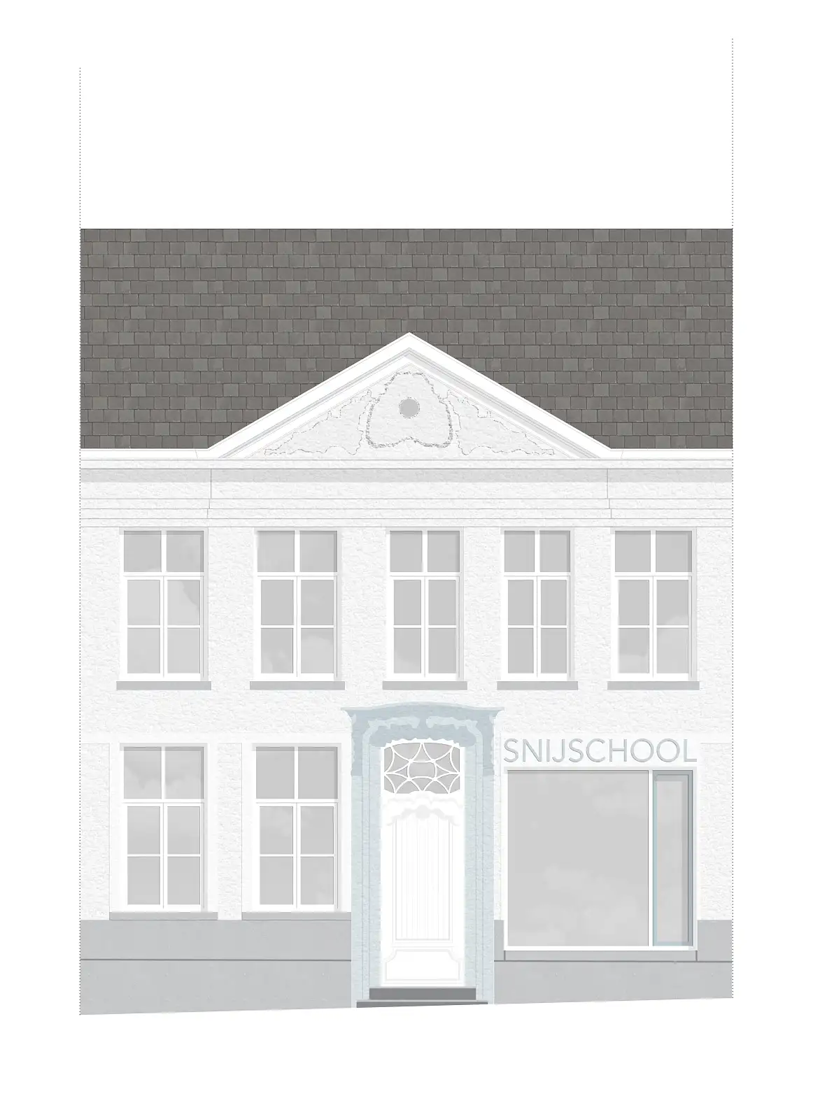 A 16th-century front and rear house were merged at the end of the 18th century in a classic Rococo style. In the 20th century, the building was converted into the Snijschool (cutting and sewing school), during which it was completely silted up. The dilapidated building has been thoroughly renovated into two offices and two residential units. The original layout of the front and rear houses has been respected. The historic oak grilles and plastered mantelpieces have been preserved and restored. At the centre of the building, a new vertical light well around which the stairs circulate brings natural light to the ground floor. The 20th-century incision with the large “SNIJSCHOOL” window has been retained, but the vertical windows have not been reconstructed. In the rear façade, the old rear house is still present on one side, with a new wooden infill with large windows and terraces next to it, giving a contemporary touch to the living and office spaces.