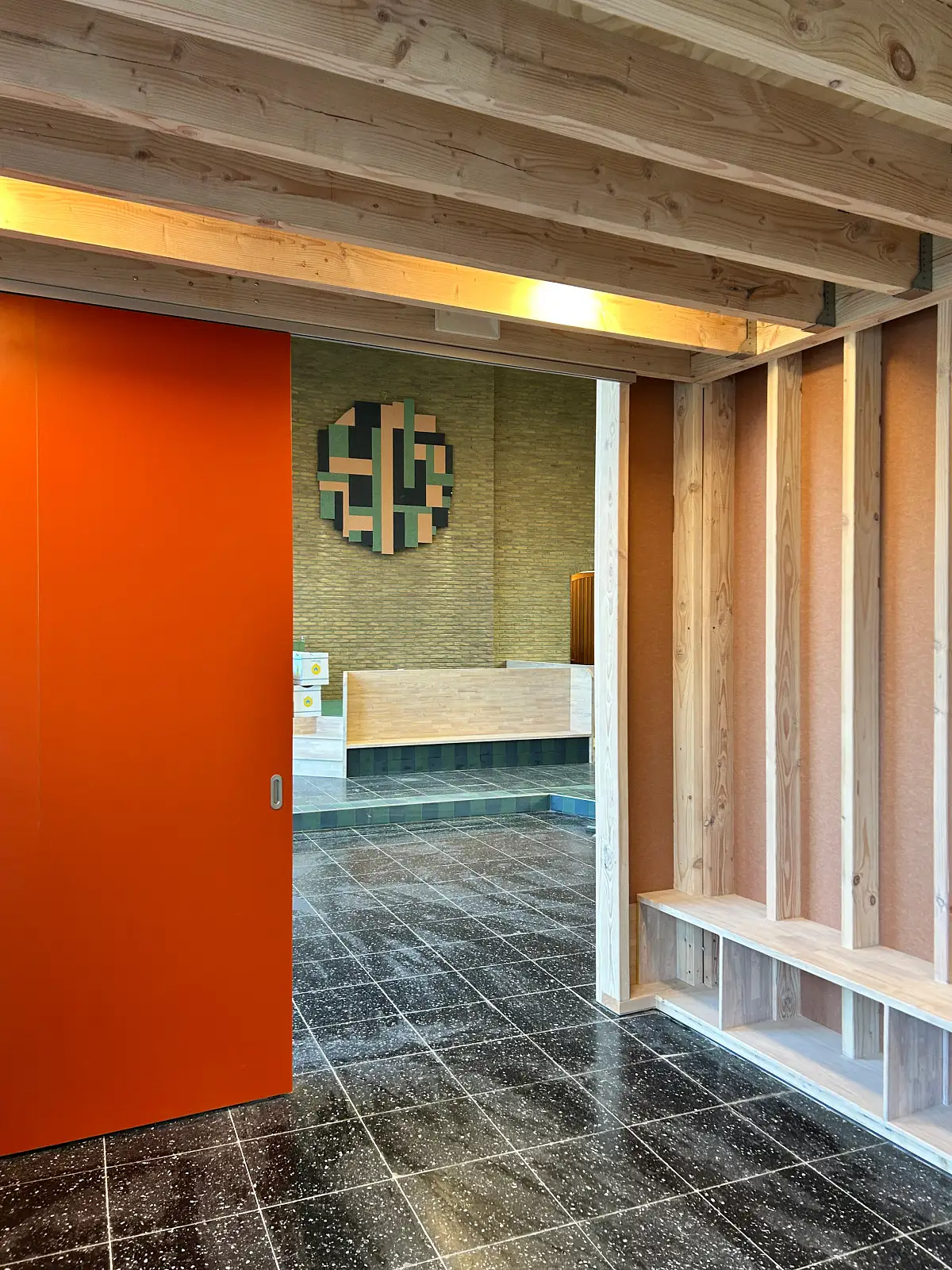 There is a subtle transition between private and public spaces: consultation rooms, meeting rooms, and offices are located on the first floor. On the ground floor, along the internal street, a second-hand shop, café, and social grocery store have been developed. Several wings can function independently. Meeting and consultation rooms can also be used by other organizations.