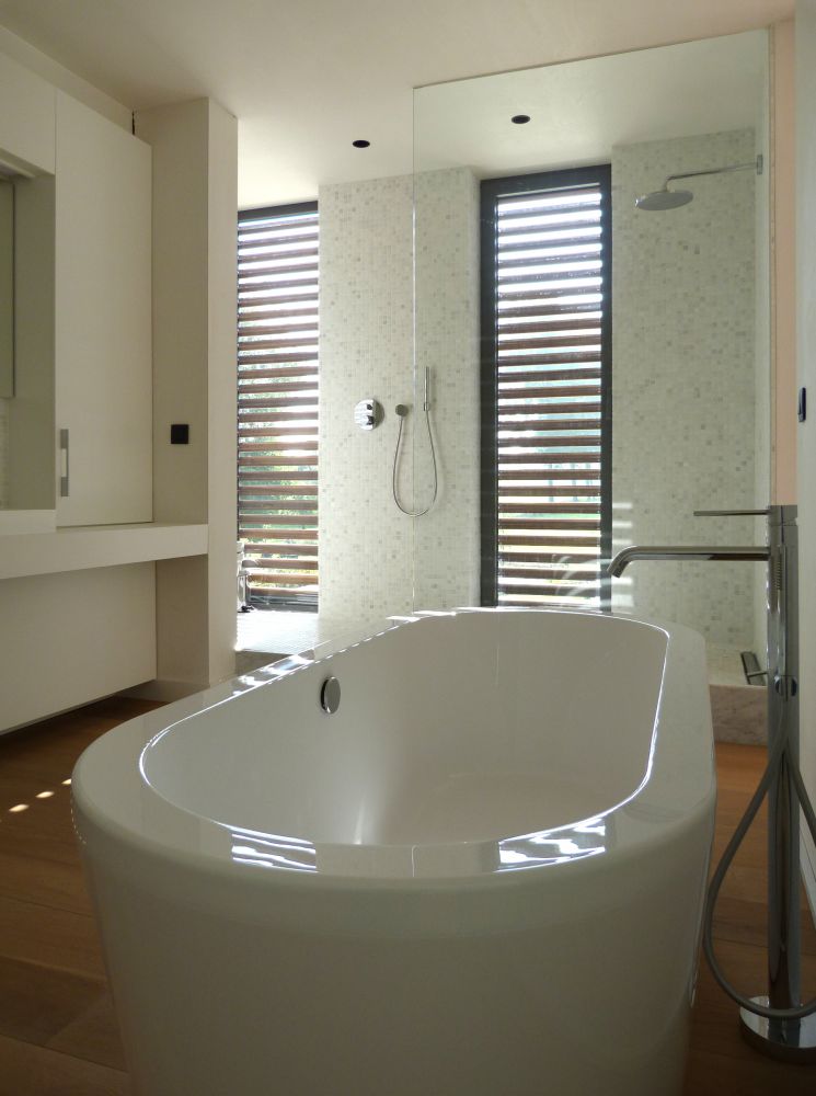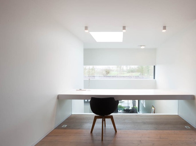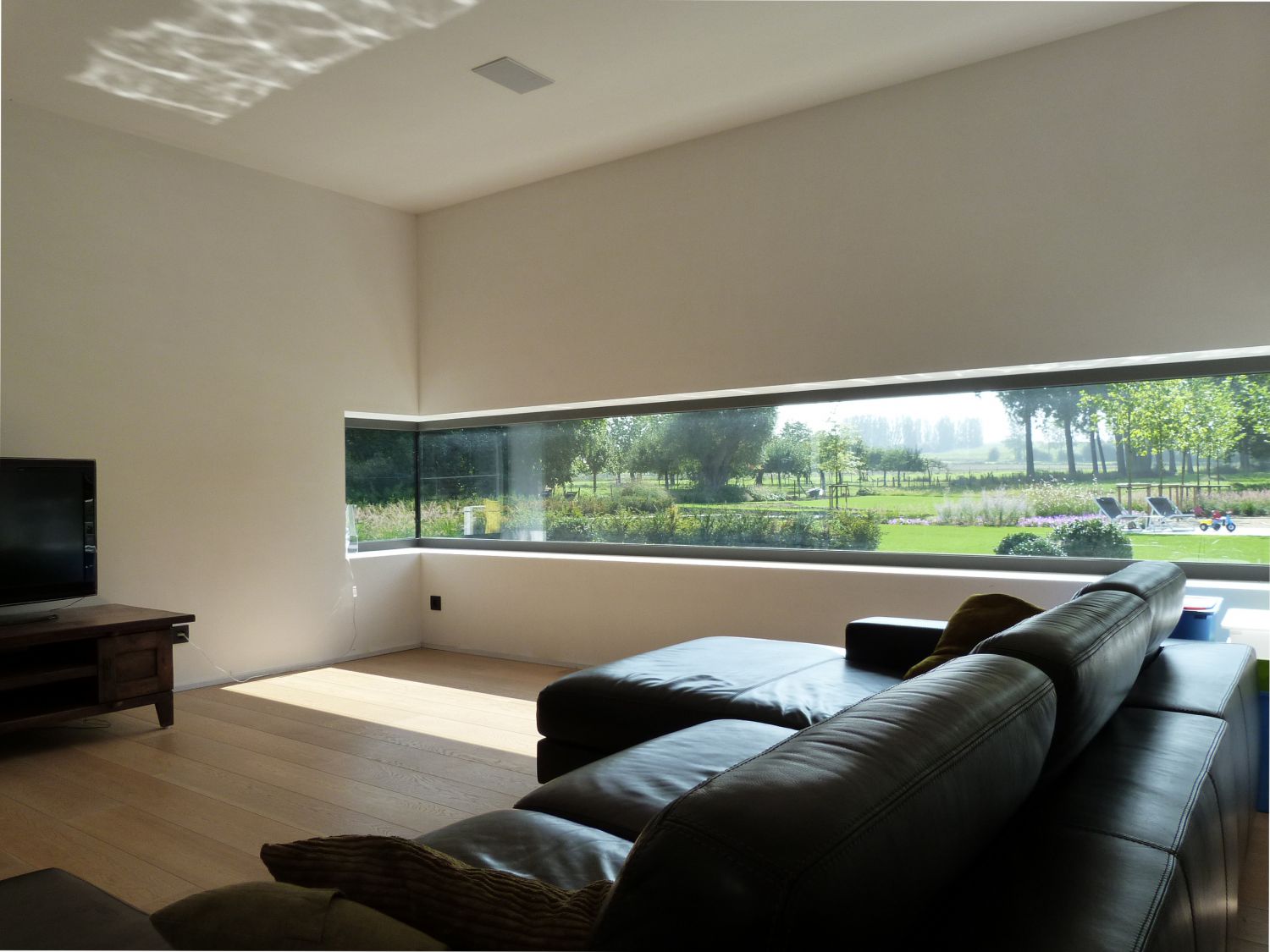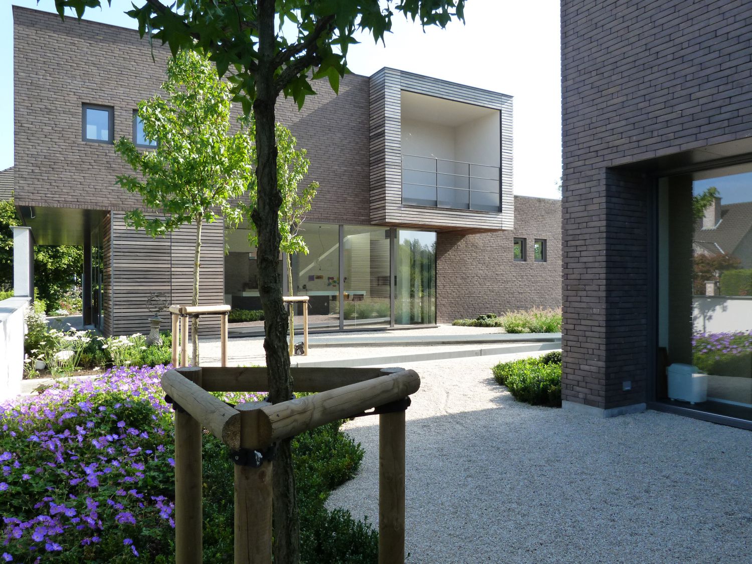 Living apart together. De ouders en een van hun kinderen bouwen langs weerszijde van een beekje. Het betreft een totaalconcept van twee verschillende woningen in één tuin. Twee diverse woonprogramma’s resulteren in een dieptewoning voor twee personen en een breedtewoning voor de jonge ouders met drie kinderen. Er is gekozen voor een niet-alledaagse woonvorm waarbij de kinderslaapkamers zich in de kelder bevinden. Privacy, comfort, oriëntatie, flexibiliteit in tijd en ruimte vormden de belangrijkste zaken binnen het ontwerp. De relaties interieur– exterieur waren uitermate belangrijk voor beide bouwheren.