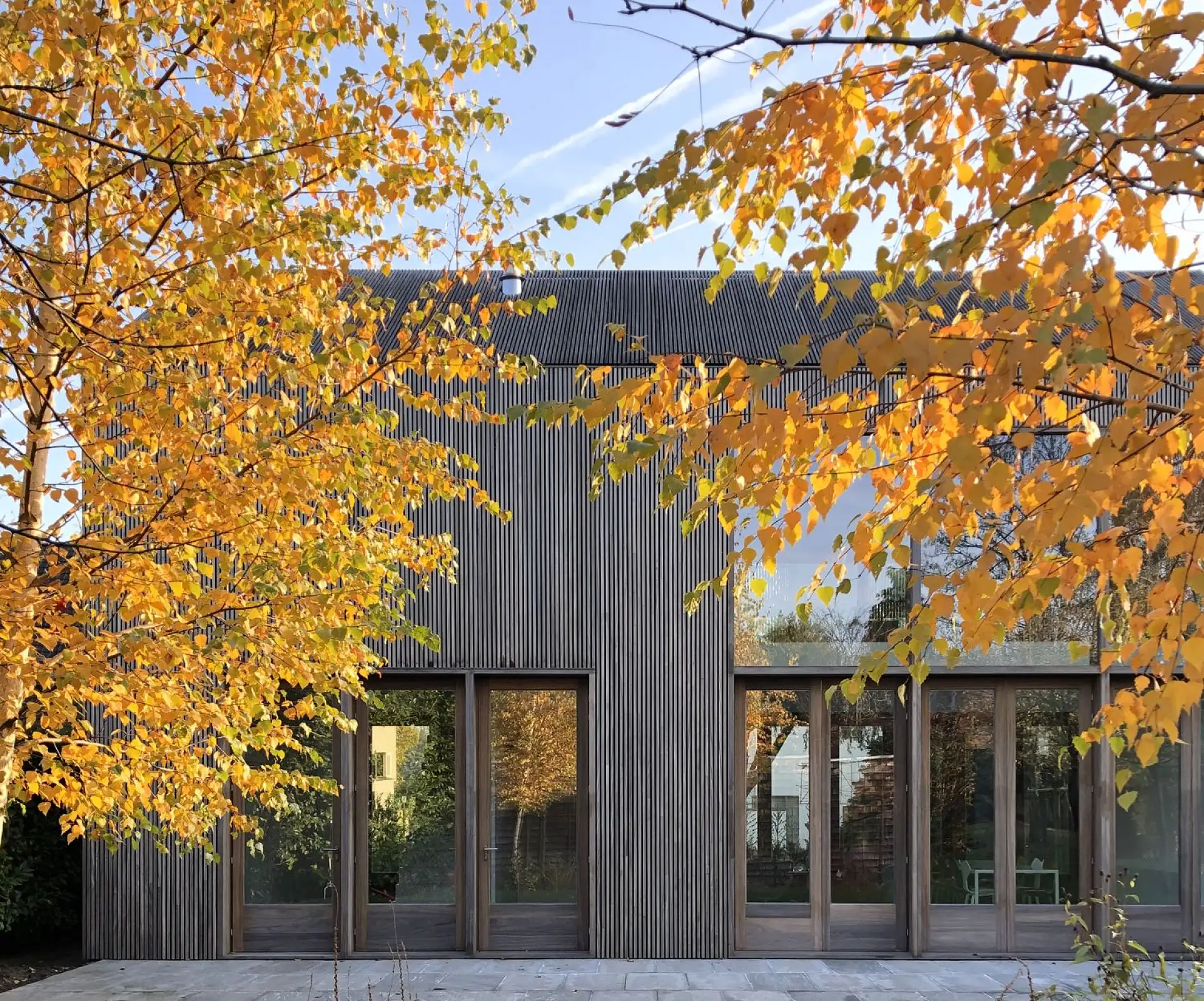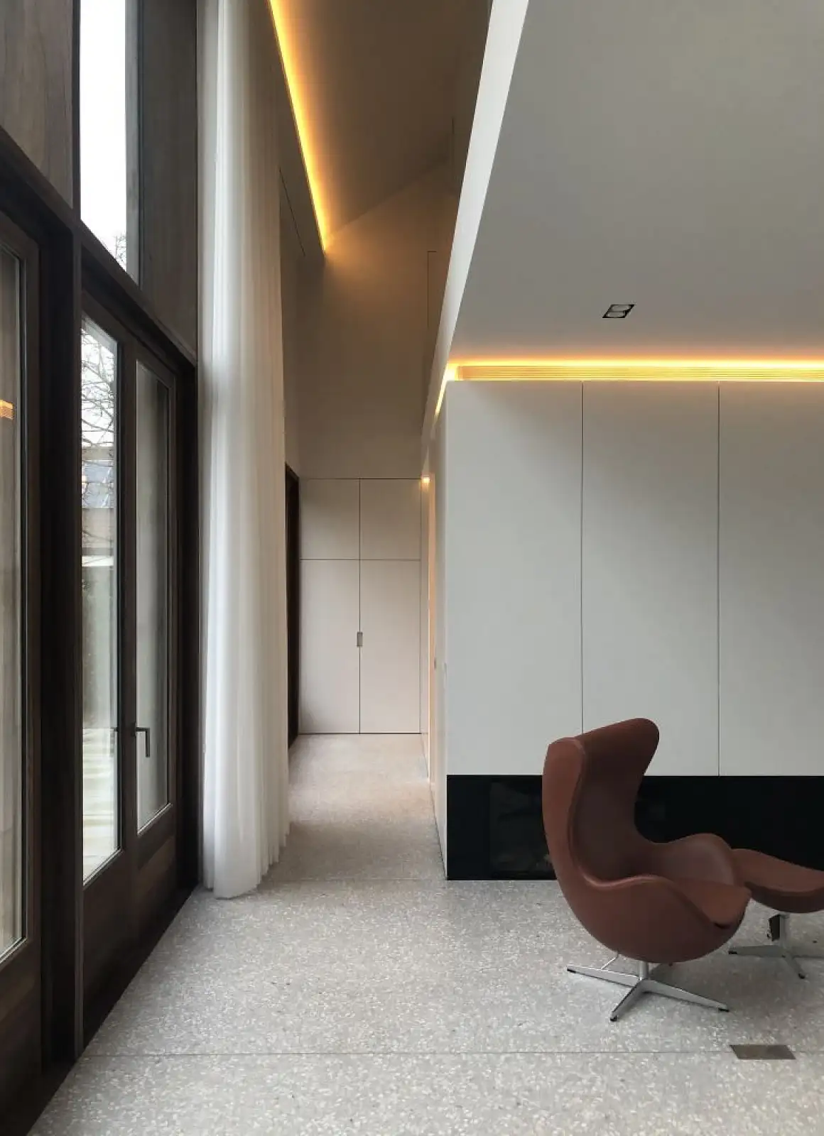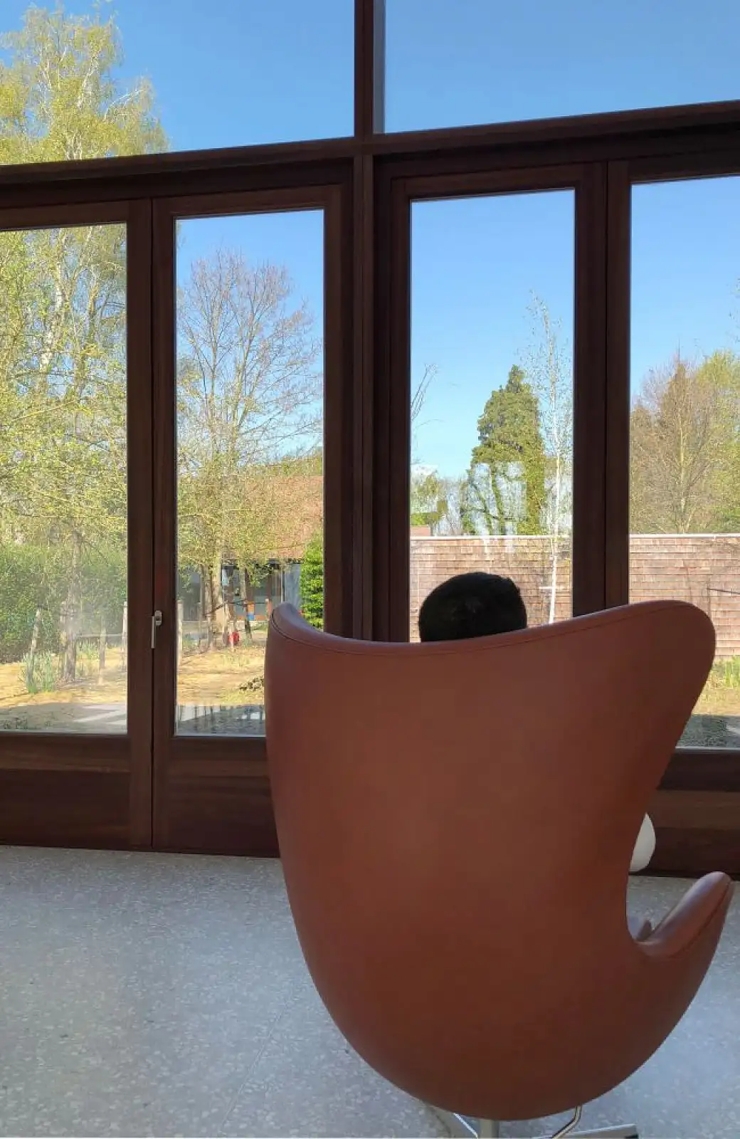 Intuïtief is gekozen om de hofstede te behouden, te verbouwen en te herbestemmen tot kantoor. Het werd een evenwichtsoefening tussen gesloten, transparante en semi-transpartante delen ergens halverwege de voor- en achtertuin.
