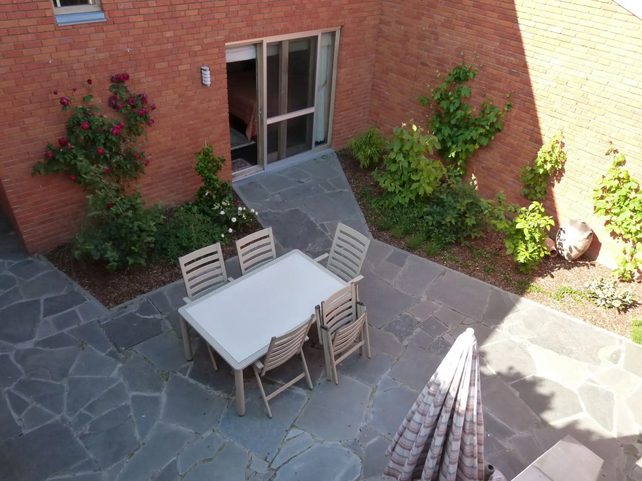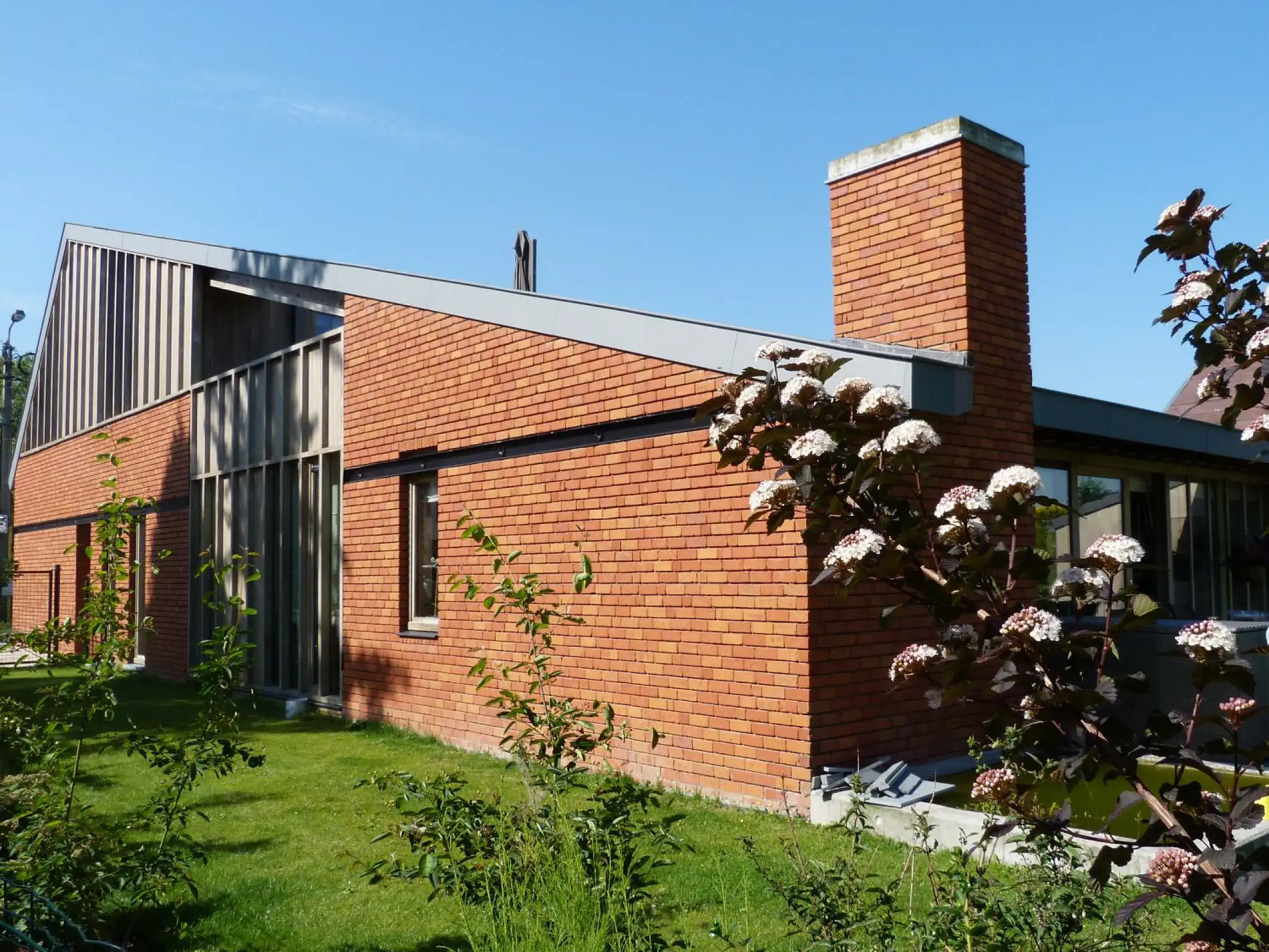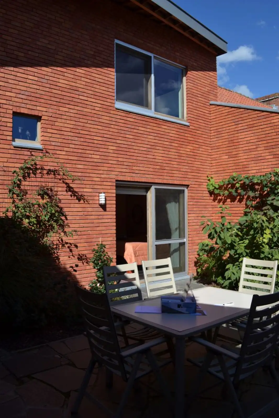 Door de krachten en middelen te bundelen wordt de totaliteit meer dan louter de som van de wooneenheden. Een gemeenschappelijke buitenruimte, zijnde de patio met rechtstreekse toegang van iedere leefruimte biedt een ontmoetingsruimte waar kleinkinderen kunnen spelen en de ganse familie de zondagmiddag kan brunchen. Ook op energetisch niveau biedt deze bouwwijze tal van voordelen. Zo zorgt 1 warmtepomp met captatieveld onder het grasperk voor de warmtebehoefte van beide woningen. Dit in combinatie met de toepassing van enkele ecologische alternatieven zoals vlokkenisolatie in de dakschil en verduurzaamt europees naaldhout als buitenschrijnwerk geeft dat dit project een degelijk antwoord biedt op de vraag naar duurzaam bouwen vandaag.