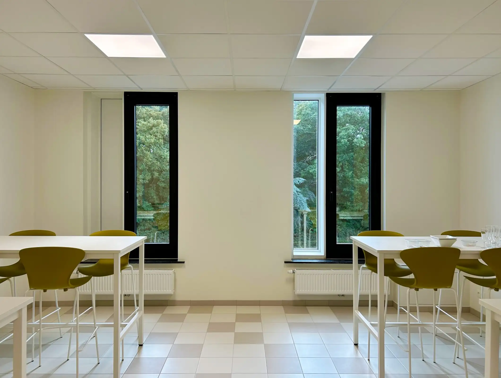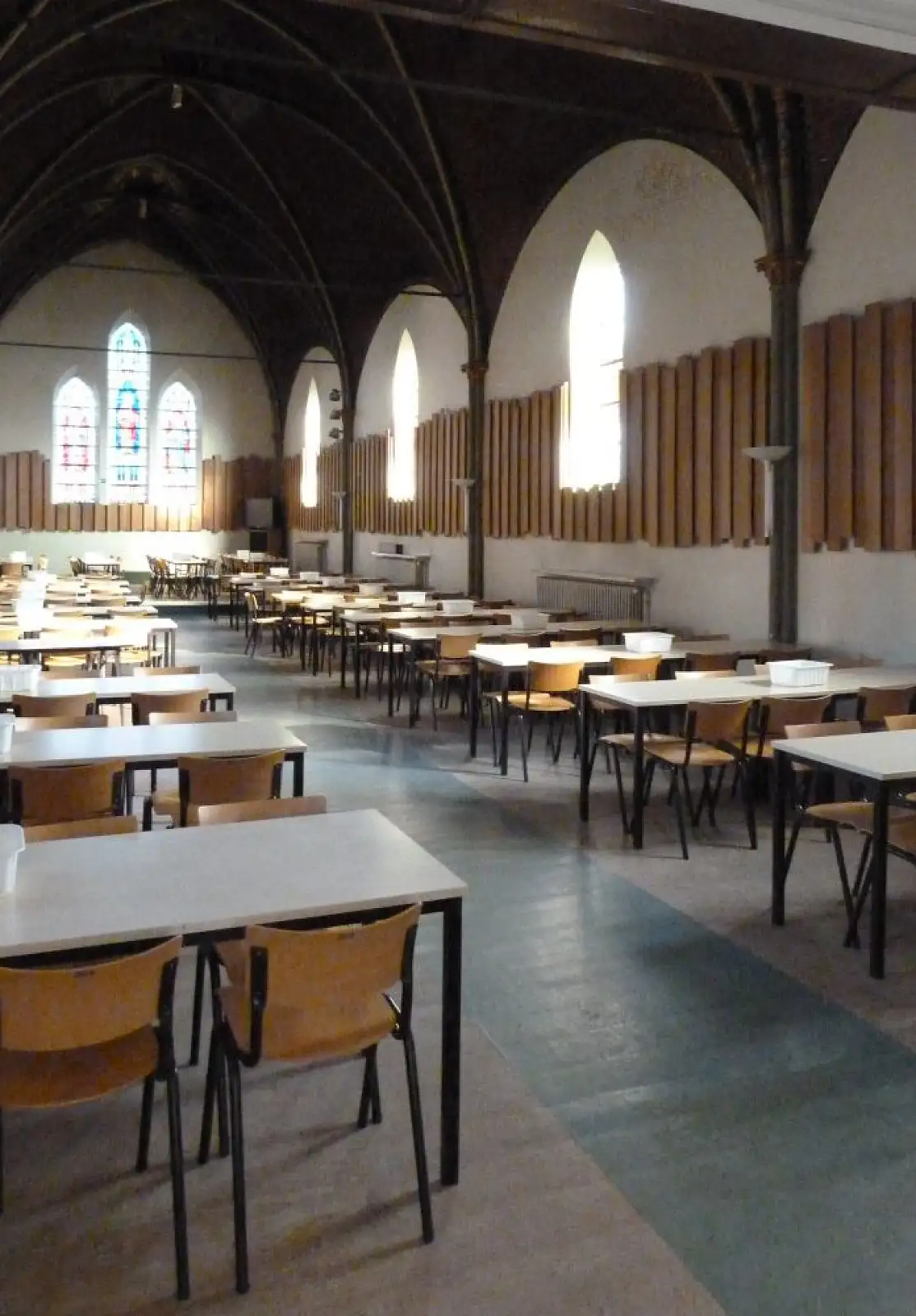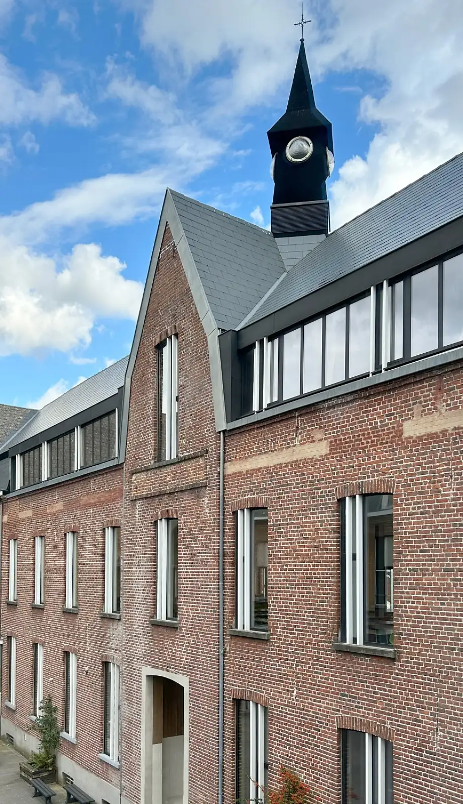 Een voormalige kloostersite aansluitend bij een secundaire school wordt stelselmatig gerenoveerd. Er wordt niet altijd voor evidentie gekozen. Zorgvuldig worden waardevolle elementen afgewogen ter recuperatie versus een pragmatische aanpak. Ook deze school is onderhevig aan continue pedagogische veranderingen waarbij infrastructureel wordt bijgestuurd en aangepast.