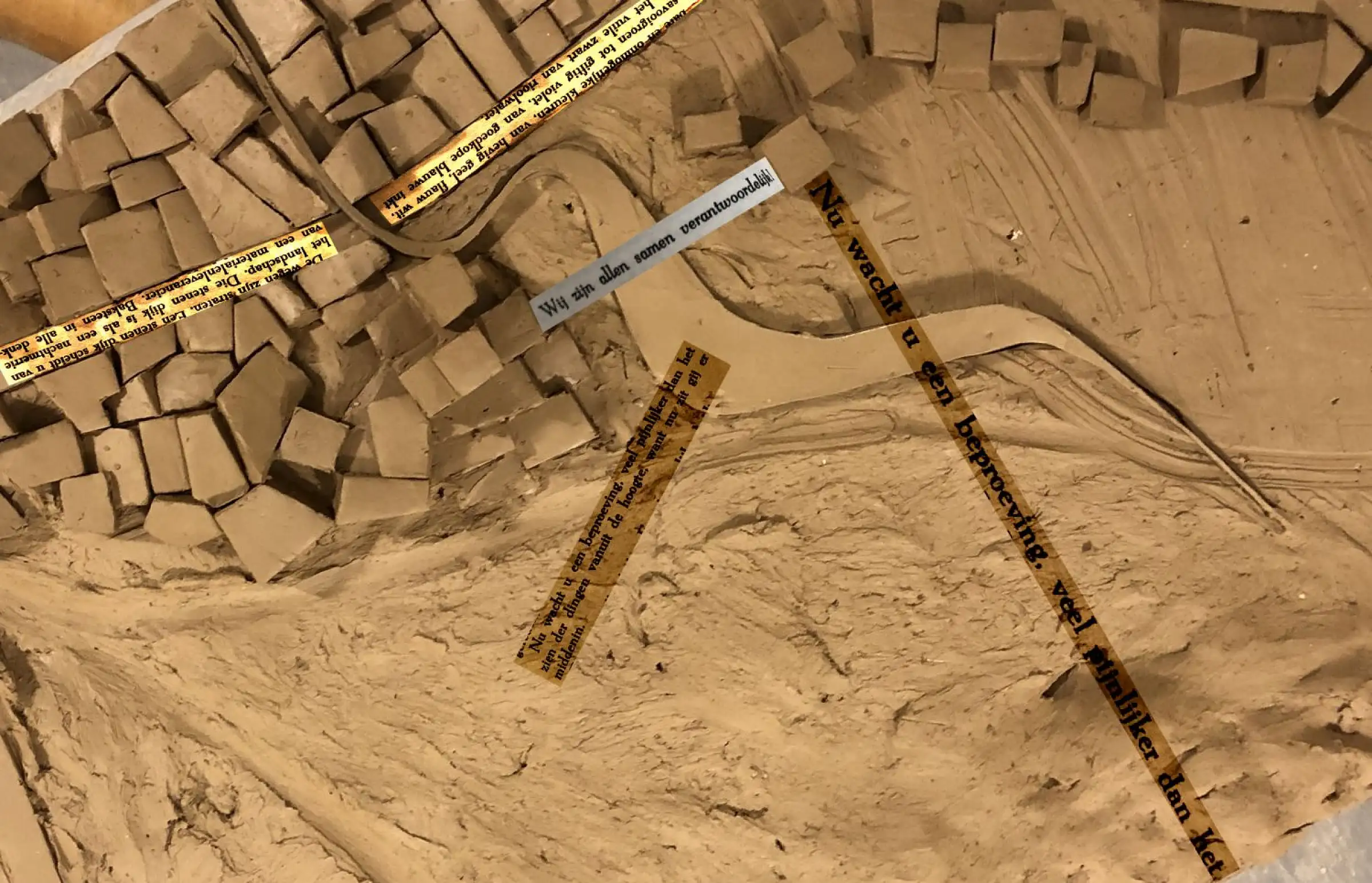 structuren in de toekomst. In plaats van ruimte verder te consumeren en ons landschap te vervormen: ‘kap een boom en de mensen verzamelen zich er niet meer rond, de vogels zitten niet meer op de takken en wind breekt niet meer op dezelfde wijze’[i]