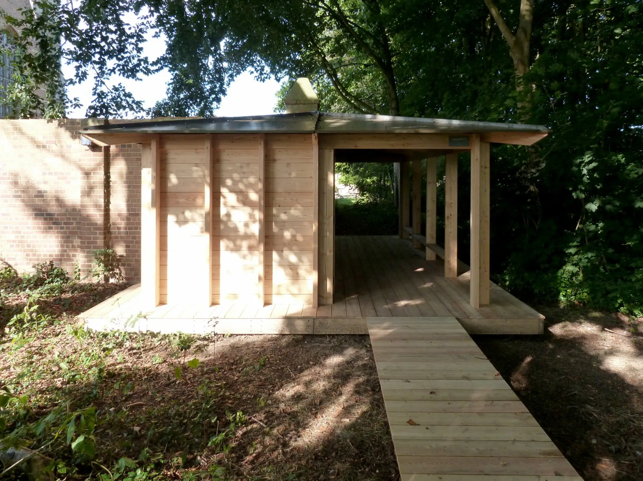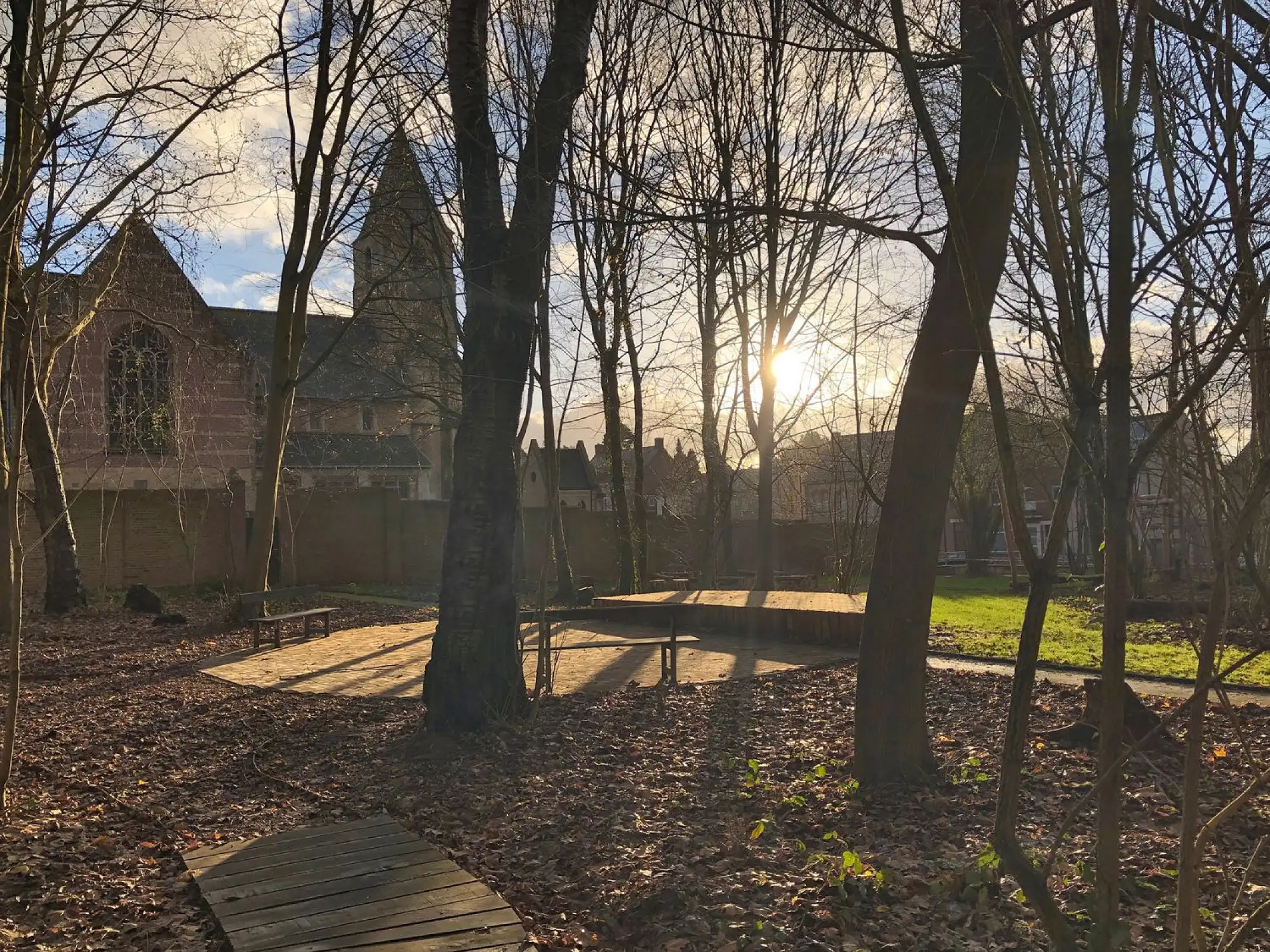 Een buurtcomité met gemotiveerde dorpelingen zocht en ontdekte met Onroerend Erfgoed structuren in de tuin. Vrijwilligers gecombineerd met provinciale subsidies hebben van de tuin een nieuwe ontmoetingsplaats gemaakt als een groen plein voor een dorp waarbij gaandeweg alle authenticiteit is verdwenen door gemobiliseerd verkeer. De rijke geschiedenis en historische lagen zijn verdwenen en nauwelijks herkenbaar na verschillende optimalisatiecampagnes voor koning auto. Bomen, hoeves, dorpscafés, voetwegen zijn stuk voor stuk verdwenen in functie van veilige en vlotter verkeer op de steenwegen en het leek dan ook logisch om gebouwen als blokjes uit te strooien over ons landschap zogezegd geordend langs die ‘voldoende’ goed uitgeruste wegen.