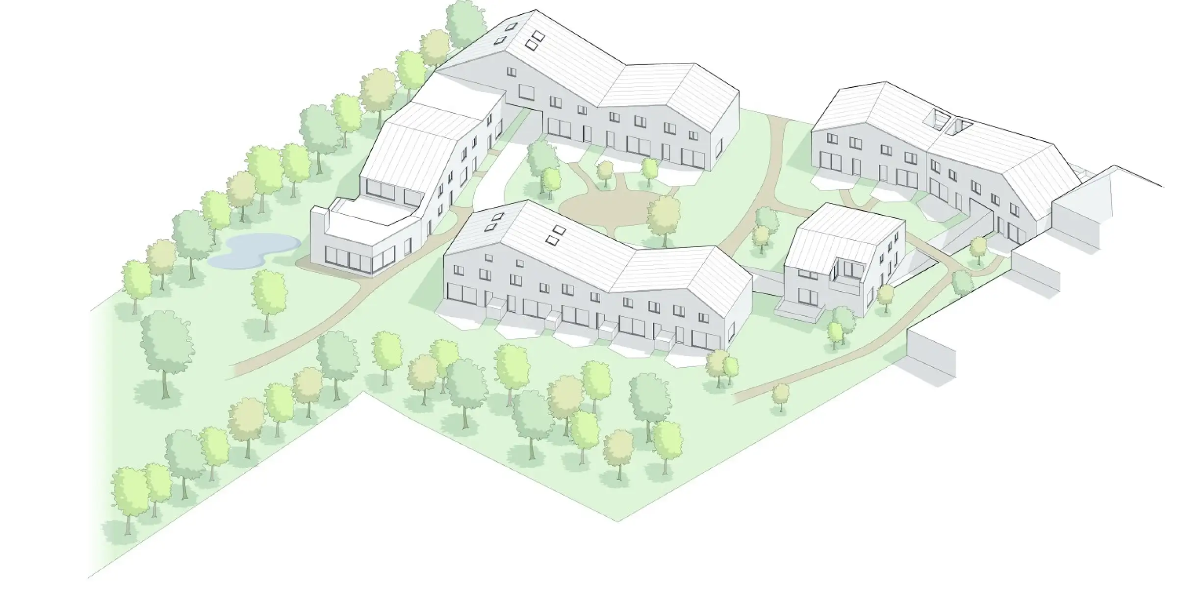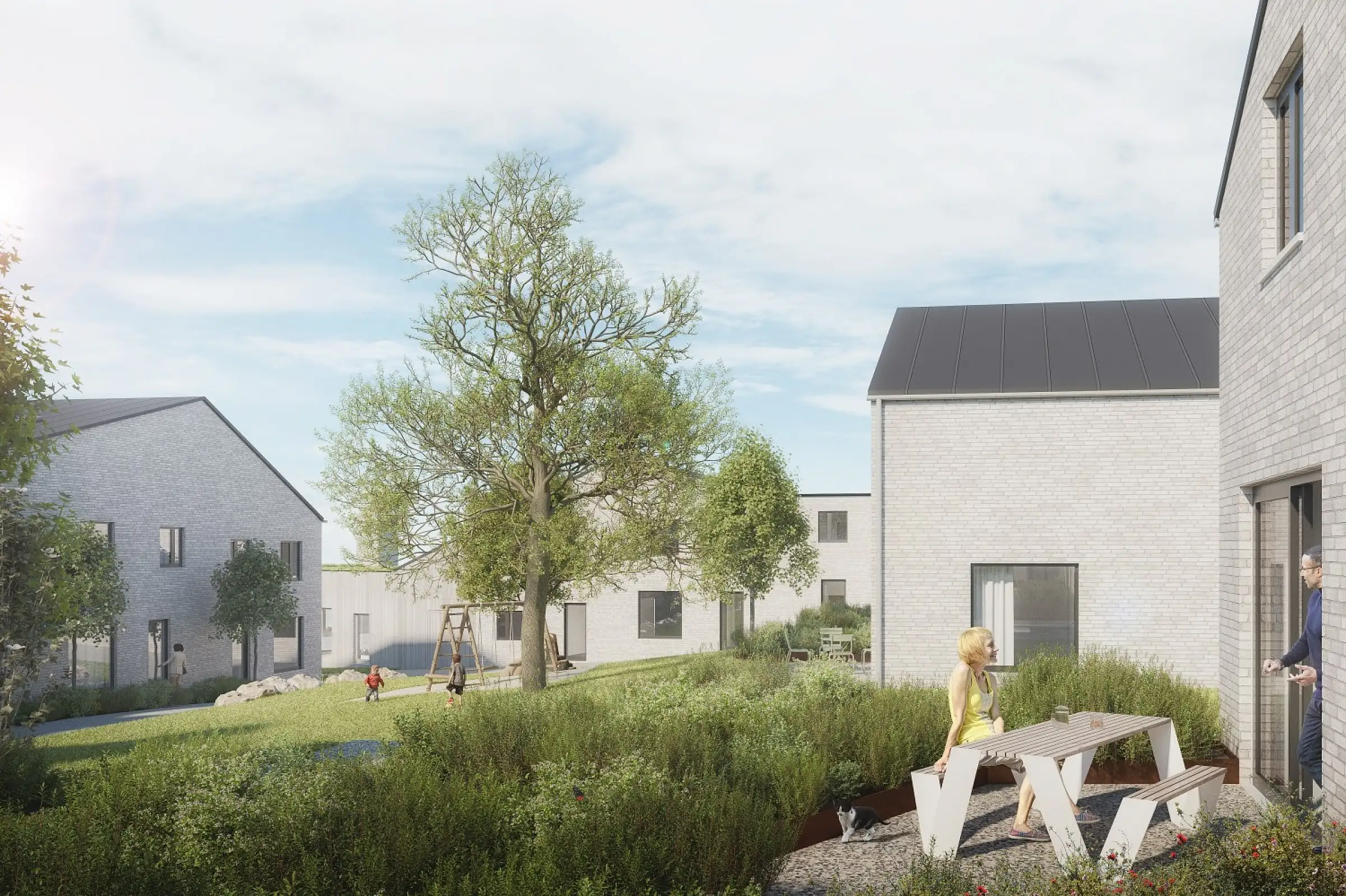 Er wordt een divers woningaanbod voorzien zodat een sociale mix ontstaat. Jonge kinderen vormen de dynamiek voor senioren die tegelijkertijd een oogje in het zeil houden. De differentiatie verhoogt de leefbaarheid en is een dynamische impuls voor de dorpskern Sint-Lievens-Esse. Deze architectuur verzoent de charmes van het dorp met een hogere densiteit en clustert bebouwing zonder de specifieke kenmerken van het dorpse wonen te negeren.