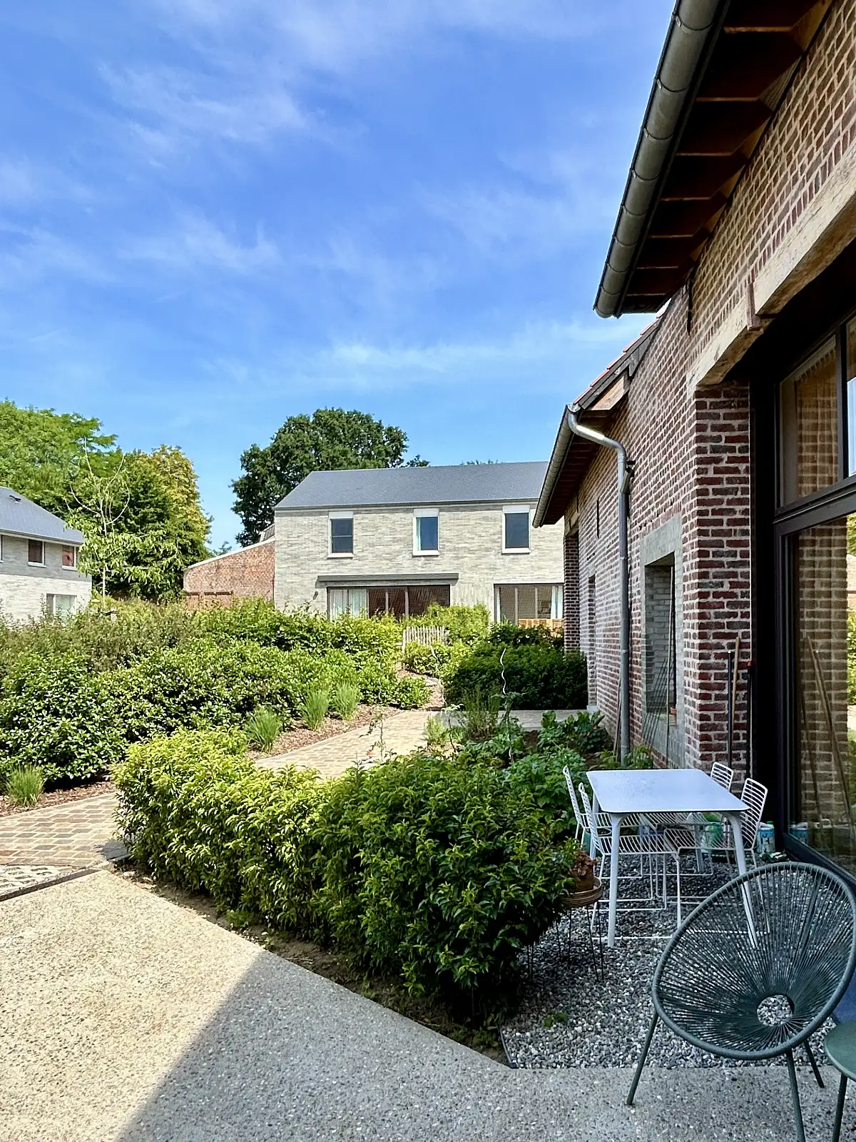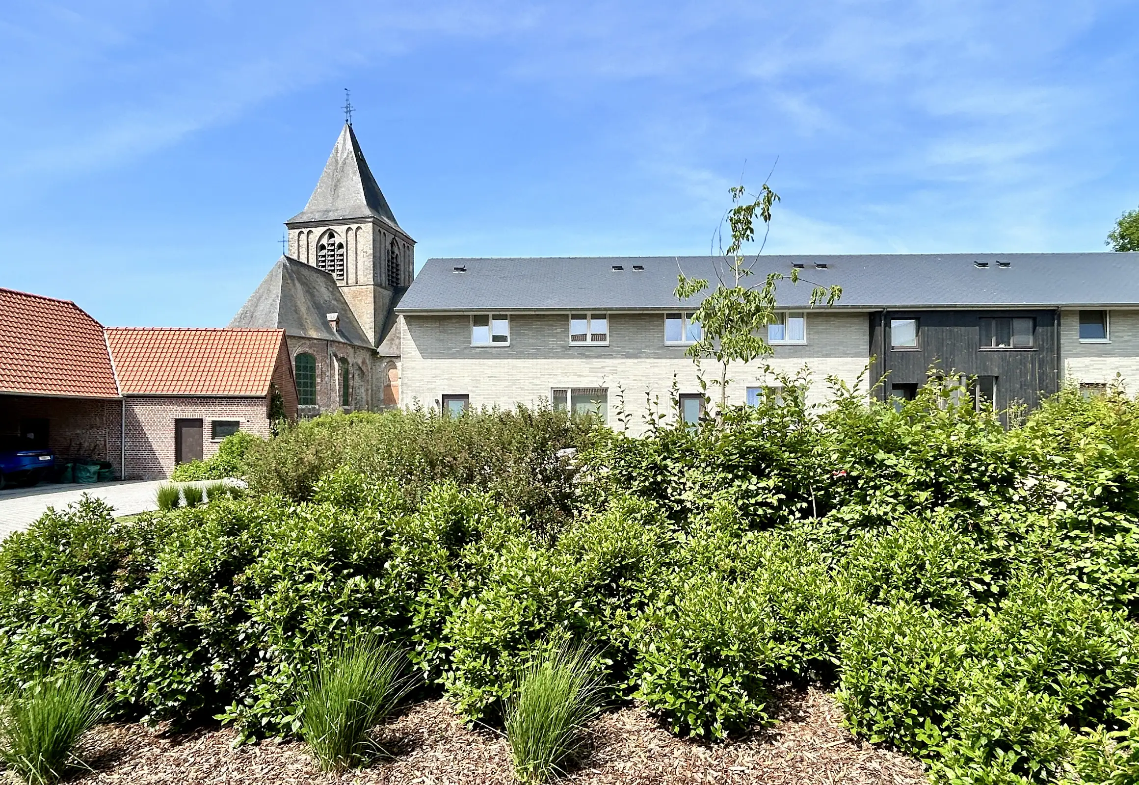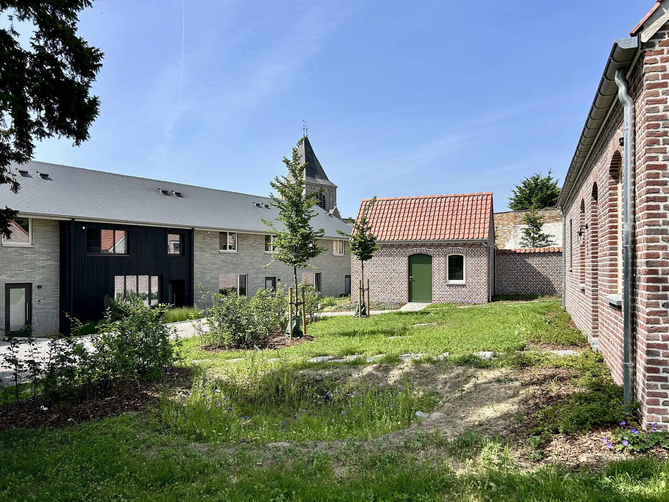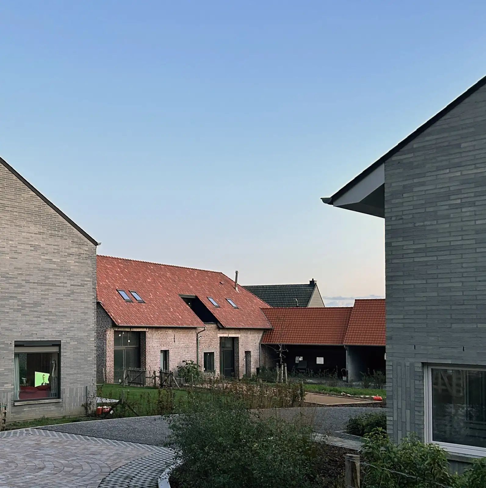 De woonentiteiten worden in gemeenschappelijk groen geconcipieerd waarbij de nadruk ligt op samenleven en samenspelen met de nodige privacy. De mogelijkheden voor de schuur zijn divers: woonentiteiten, kantoorruimte, kinderopvang, assistentiewoningen voor personen met een beperking, vrije beroepen, … Dit is de ideale manier om te verdichten in de landelijke dorpskern met aandacht voor differentiatie, energie, inclusie,…
